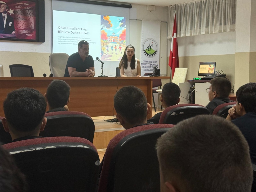 2025-2026 EĞİTİM-ÖĞRETİM YILI İLK GÜNÜNDE, 9. SINIF ÖĞRENCİLERİMİZE MESLEKİ VE TEKNİK LİSE PROGRAMLARIMIZIN ALAN TANITIMLARININ YANI SIRA ORYANTASYON EĞİTİMİ VERİLDİ.