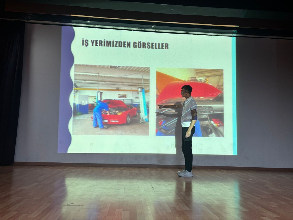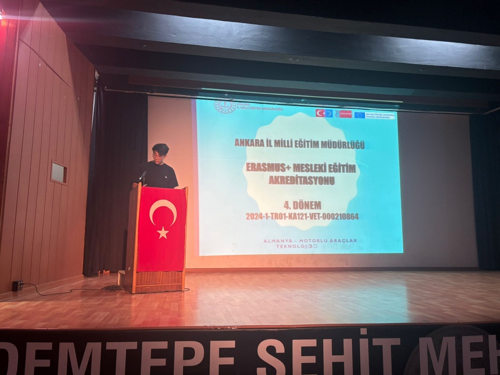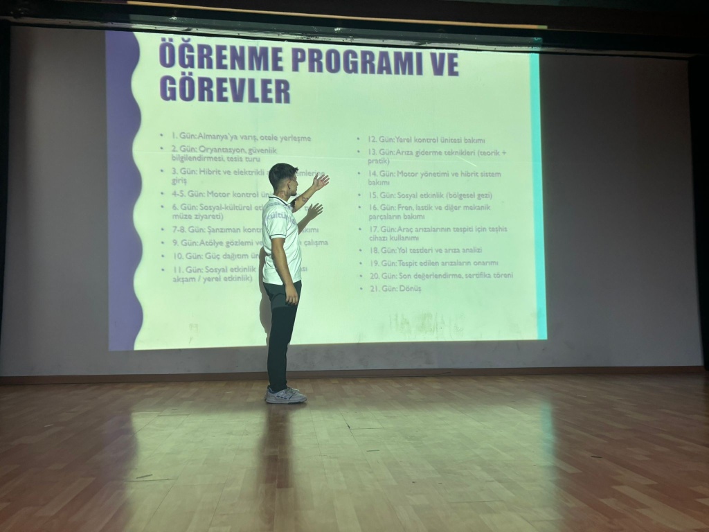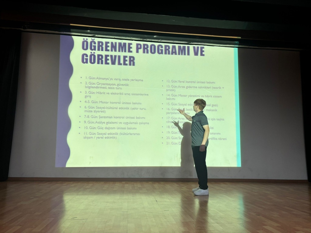 Okulumuzda yürütülen Erasmus+ Staj Hareketliliği Projesi kapsamında yaygınlaştırma faaliyetleri devam ediyor. Bu çerçevede, 9. sınıf öğrencilerimiz ile Motor Alanı 10, 11 ve 12. sınıf öğrencilerimize yönelik bilgilendirme sunumu gerçekleştirildi.