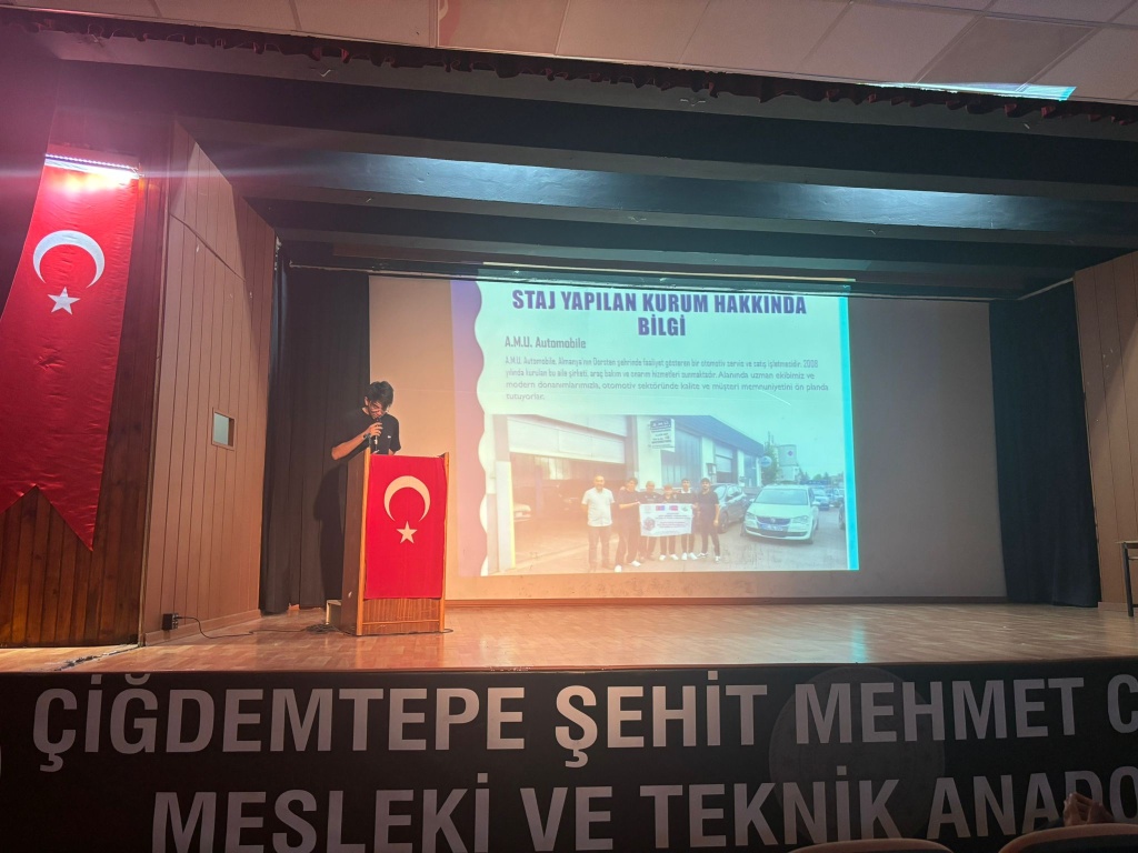 Sunumda; proje süreci, öğrencilere kazandırdığı deneyimler, Avrupa’daki mesleki eğitim uygulamaları ve staj hareketliliğinin kişisel ve mesleki gelişime katkıları detaylı bir şekilde paylaşıldı. Ayrıca, hareketlilikten dönen öğrencilerimiz, edindikleri tecrübeleri arkadaşlarıyla paylaşarak motivasyon kaynağı oldular.